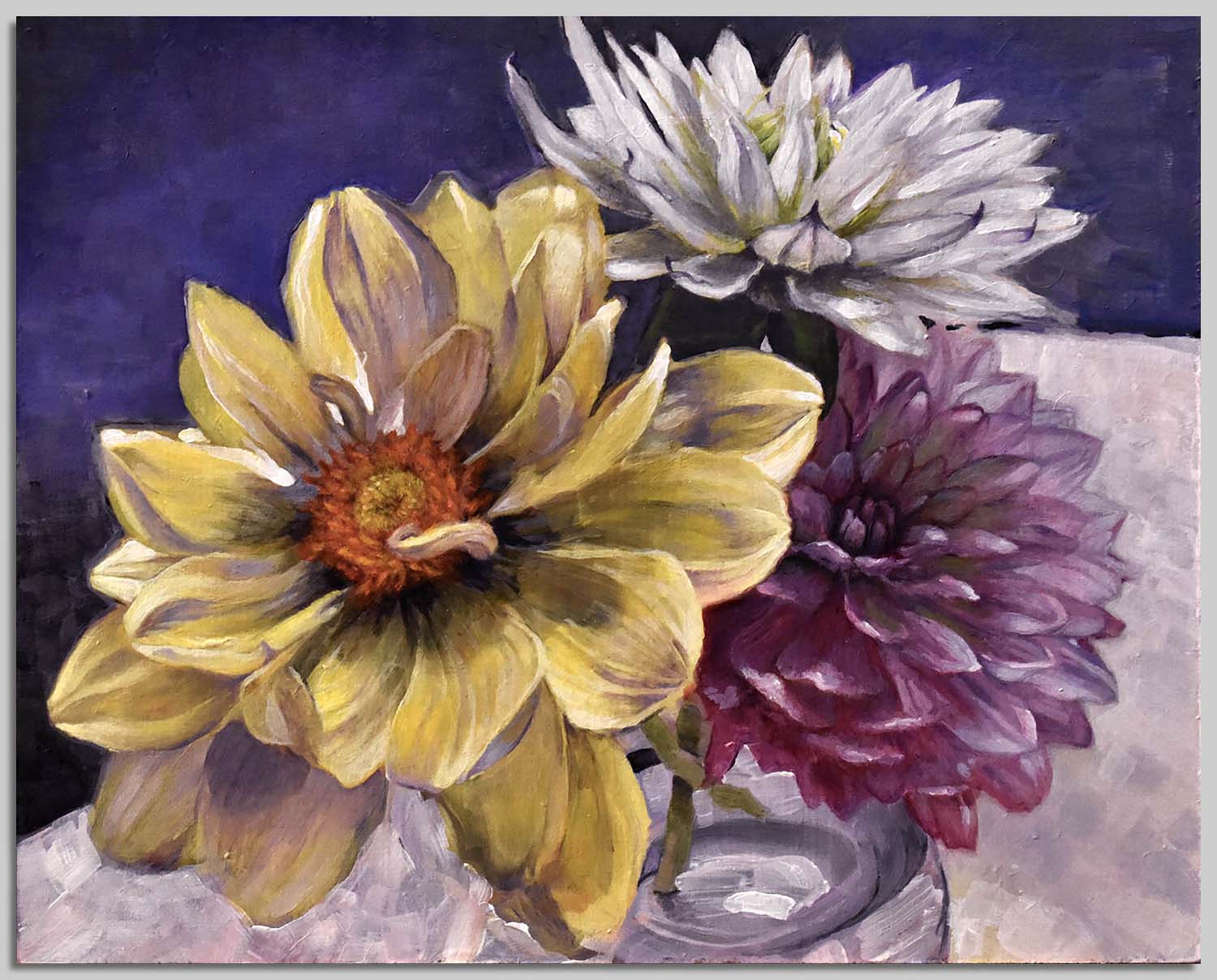 Dahlias. Acrylic. 8×10 in. SOLD