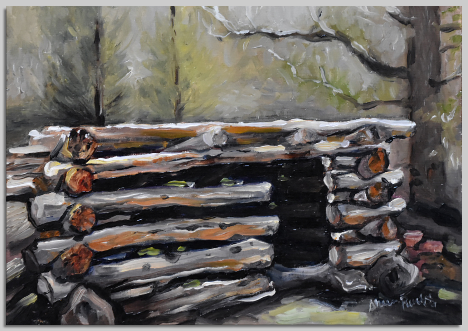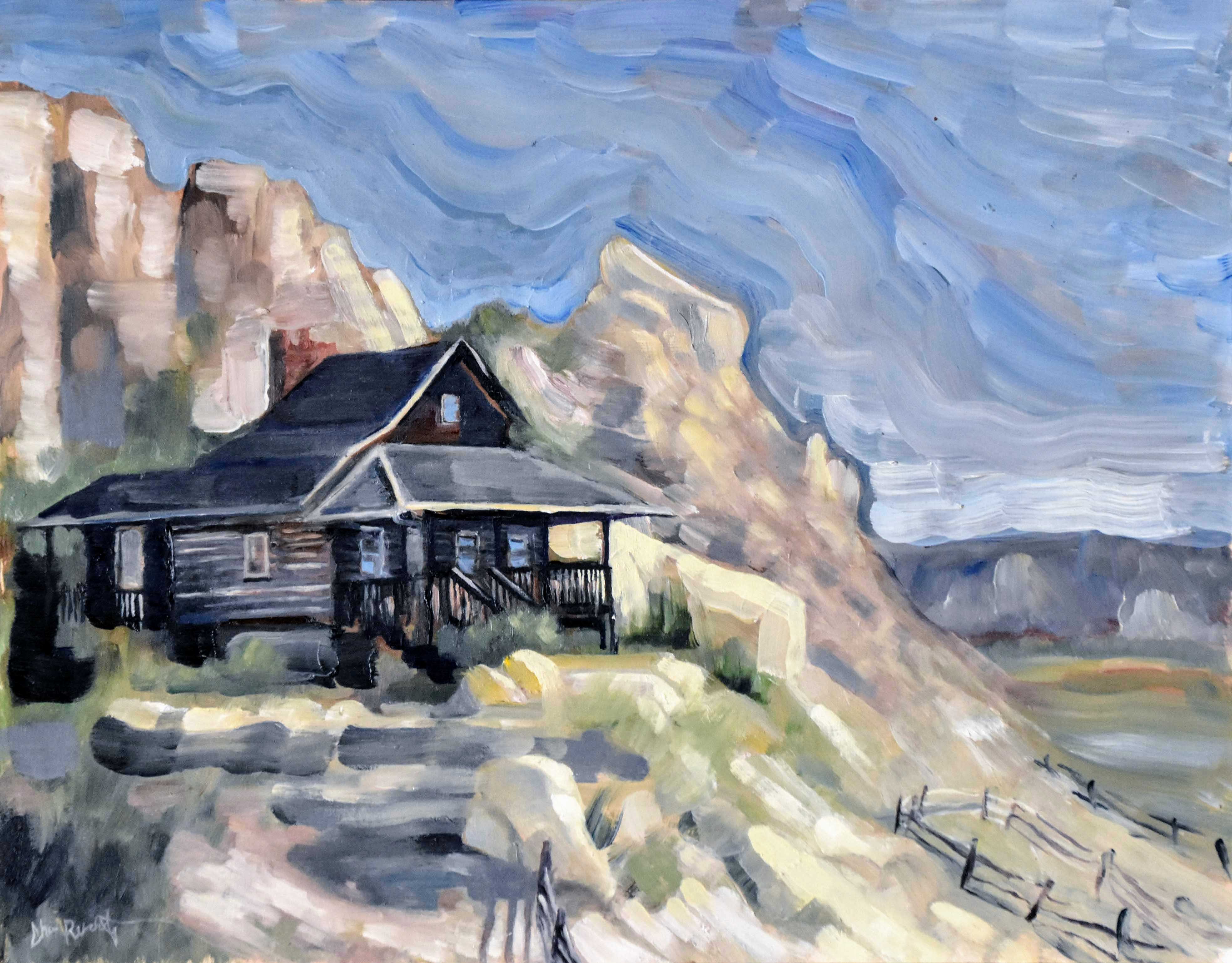 Isaac Riddle Cabin. Oil on panel. 11×14 in. Plein air. ***SOLD***
