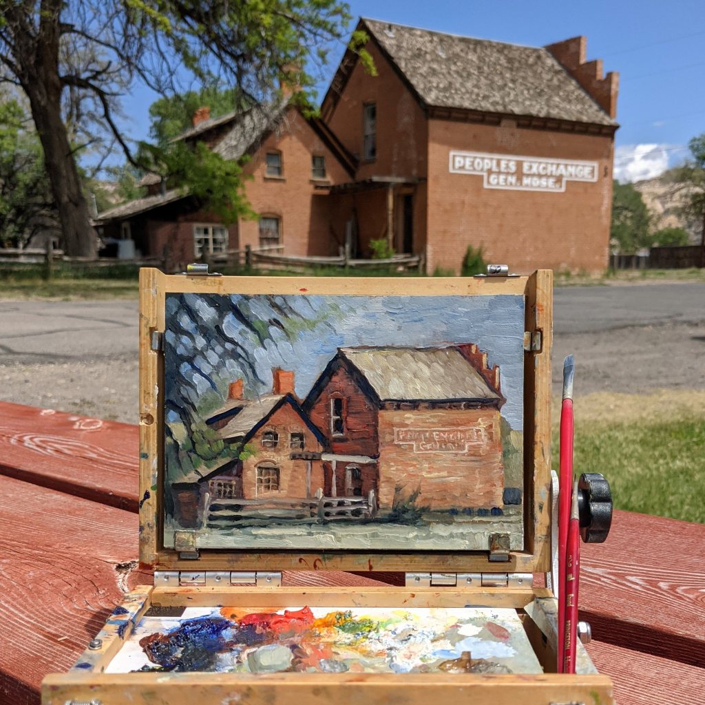 Escalante City Park. Oil. 5×7 in. Plein air.